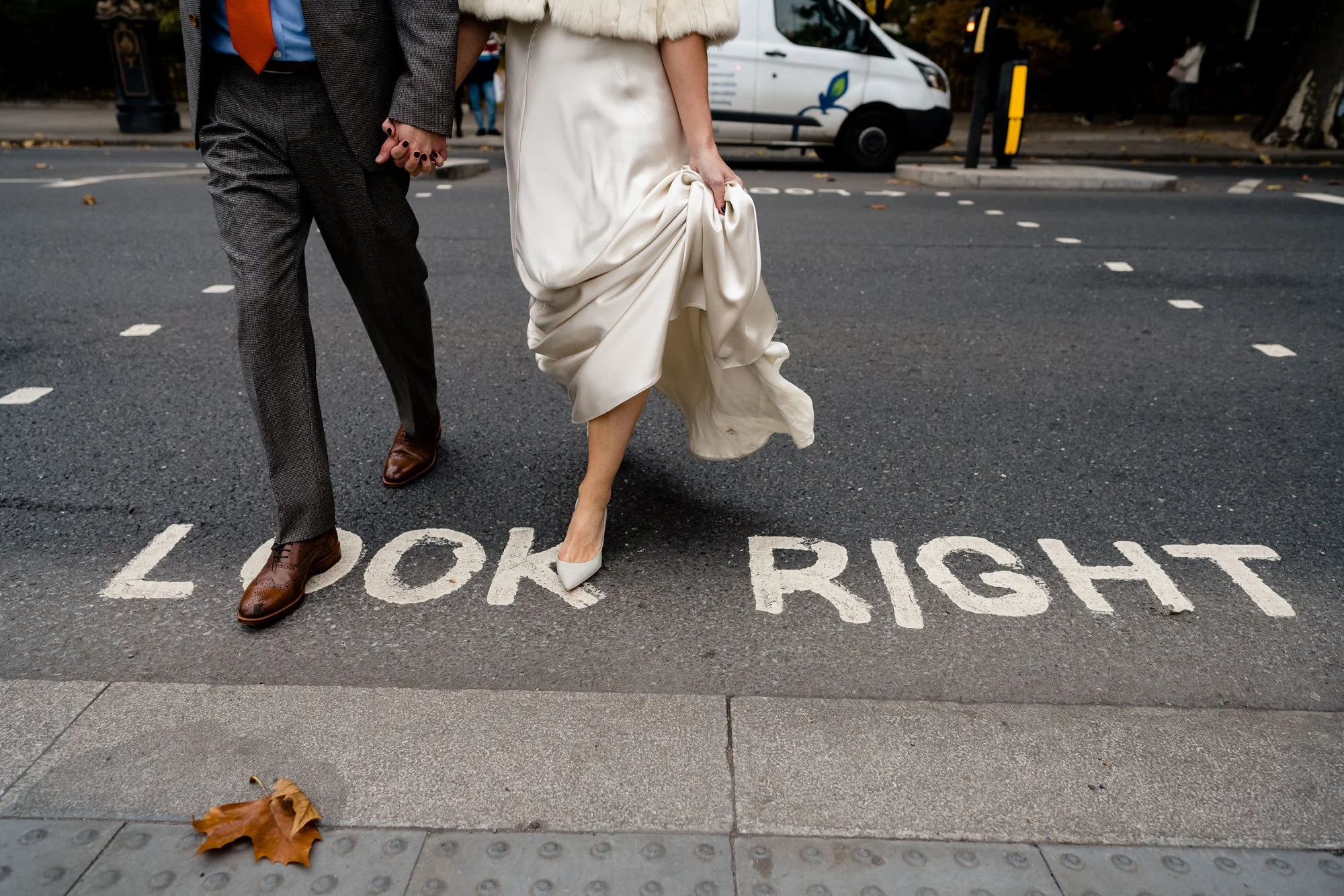 Jane and Chris were married at the spectacular RSA House in central London – a Georgian townhouse with a beautifully light and bright ceremony room, and a striking Great Hall for dining, housing a series of six epic paintings by artist James Barry. These two explored the surrounding streets and parks for their Autumnal portraits, before returning to celebrate with friends and family.